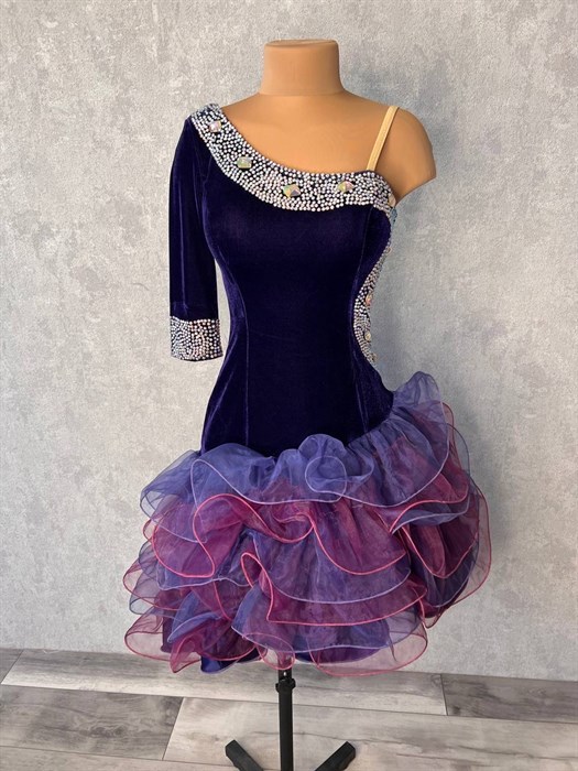 Роскошное эффектное платье Латина Юниоры-1. Эксклюзивный дизайн❗️Боа страуса❗️Перчатки ❗️